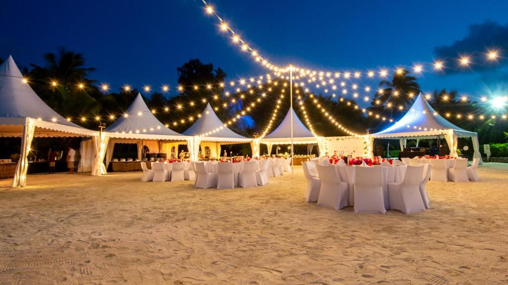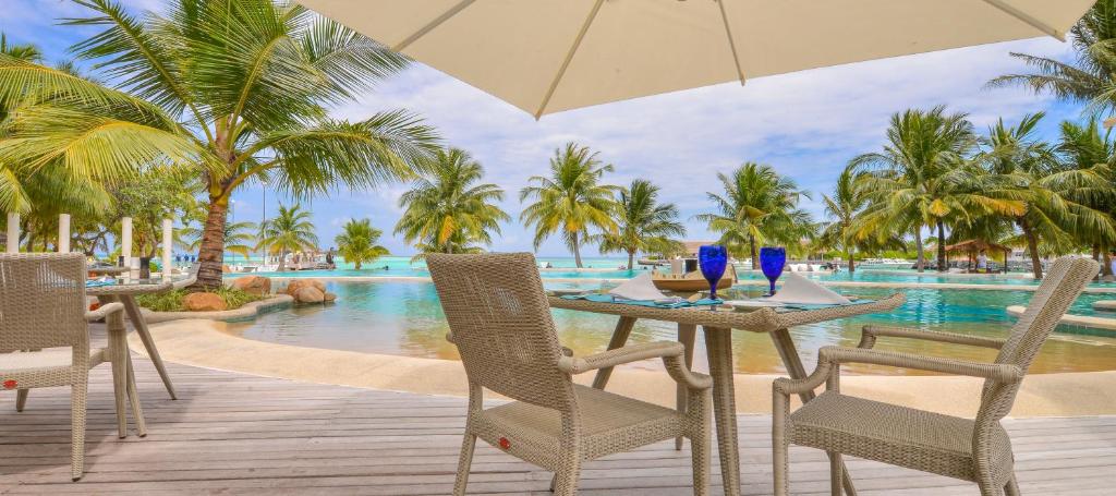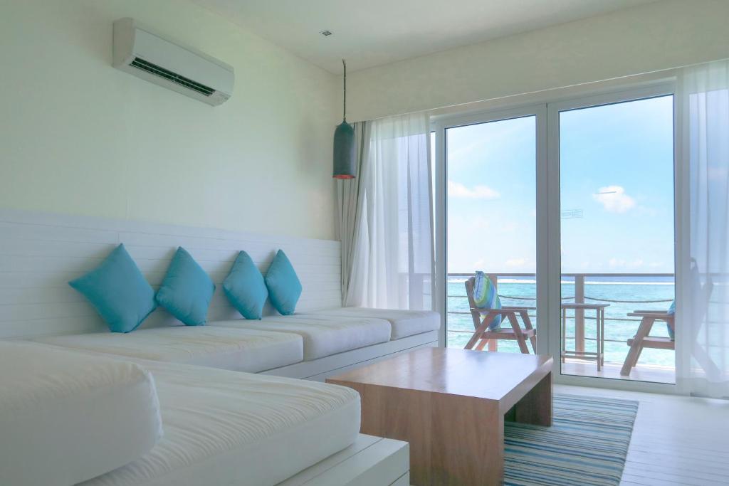 Overwater Villa Island View (85 м, макс. 2+1 чол.). Водяні вілли розташовані на дерев'яних палях у водах лагуни. Вид на сусідній місцевий острів. Складаються зі спальні, ванної кімнати. Є душ і ванна на відкритому повітрі. Кожна вілла має власну терасу з двома лежаками та гамаком, розташованим над водою. Прямий спуск в океан. Розміщення з дітьми до 12 років можливе лише під час підписання батьками спеціальної форми Liability form.