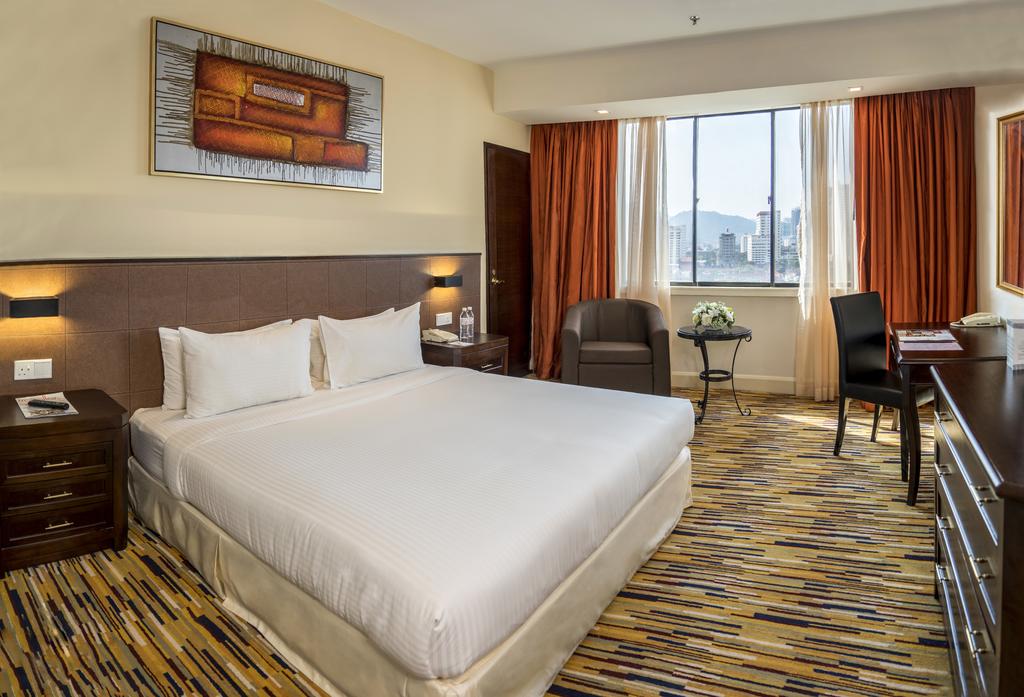 Современный отель Royal Penang расположен в самом сердце Джорджтауна и совмещен с огромным торговым центром Penang Plaza, что дает ему дополнительные преимущества, кроме этого в непосредственной близости от него находятся деловые кварталы и популярные магазины города. Из окон многоэтажного здания отеля открывается отличный вид на исторические улицы Джорджтауна и море. Royal Penang в немалой степени ориентирован на деловых путешественников - для них подготовлены специальные номера. Дорога от отеля до международного аэропорта Пинанга на машине займет 20 минут, а до достопримечательностей города - 5 минут, до пляжей Бату Ферринги - 30 минут.