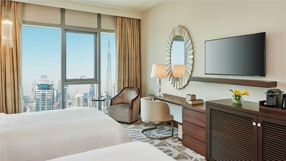 Guest room- 45 кв. м. Насолоджуйтесь перебуванням у цьому стильному номері. Залишайтеся на зв'язку з безкоштовним Wi-Fi або розслабтеся перед 48-дюймовим HD-телевізором. Почніть свій день зі свіжої кави з еспресо-машини. Освіжитися в елегантній ванній кімнаті з окремою ванною та окремою душовою кабіною. Серед інших зручностей - міні-холодильник і сейф. Deluxe room- 45 кв. м. Милуйтеся видом на Бурдж Халіфа з цього стильного номера з одним двоспальним ліжком розміру "king-size". Залишайтеся на зв'язку завдяки безкоштовному Wi-Fi або розслабтеся перед 48-дюймовим HD-телевізором. Освіжитися в елегантній ванній кімнаті з окремою ванною та окремою душовою кабіною. Серед інших зручностей - міні-холодильник, сейф та еспресо-машина. Executive room- 45 кв. номер з доступом до представницького лаунжу з низкою переваг, включаючи безкоштовний сніданок та прохолодні напої. Залишайтеся на зв'язку завдяки безкоштовному Wi-Fi або розслабтеся перед 48-дюймовим HD-телевізором. Освіжитися в елегантній ванній кімнаті, що має окрему ванну та окрему душову кабіну. Серед інших зручностей - міні-холодильник, сейф та еспресо-машина.