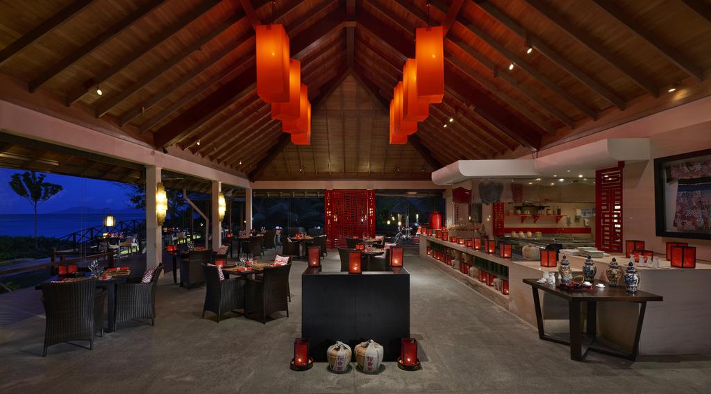 Portobello – ресторан, з сучасною італійською кухнею та гарним вибором спеціально відібраних вин. З ресторану відкривається мальовничий краєвид на гору Dauban. Ресторан має в своєму розпорядженні комфортний критий салон і терасу на відкритому повітрі. Відкрито на вечерю з 19:00 до 22:00. Sakura – ресторан з вишуканою японською кухнею та суші-баром, розташований за кілька кроків від піщаного пляжу. Являє собою ідеальне місце для насолоди найкращими стравами японської кухні Fuzion. На вечерю рекомендується розміститися на відкритому повітрі, де під місяцем і шелестом листя трапеза стає воістину казковою. Ресторан відкрито на вечерю 19:00 до 22:00. Teppanyaki - спа-ресторан розташований біля узбережжя, з великим вибором різноманітних страв з морепродуктів, які готуються в стилі теппаньякі на очах у відвідувачів і після приготування відразу подаються на стіл. Ресторан відкритий на вечерю з 19:00 до 22:00. Grann Kaz – ресторан, розташований у відреставрованій будівлі родини Dauban, які були колишніми власниками відсування. У цьому затишному ресторані гості можуть насолодитися самотньою атмосферою за вишуканою вечерею. Ресторан відкритий на вечерю з 19:00 до 22:00. Le Brizan – ресторан, де можна скуштувати різноманітні легкі закуски, провести час за келихом вина та насолодитися коктейлями, приготовленими в острівному стилі біля басейну або на березі океану. Ресторан відкритий з 10:00 до 12:00. La Pizzeria – піцерія з вільною та розслаблюючою атмосферою, де пропонується свіжоприготовлена піца та різноманітні пікантні закуски. Піцерію відкрито на обід з 12:00 до 17:00. Cafe Dauban – кафе, з видом на басейн та гору Dauban з одного боку, та на Індійський океан – з іншого, де пропонуються страви місцевої креольської та міжнародної кухонь. Ресторан відкритий на сніданок, обід та вечерю з 07:00 до 22:00.