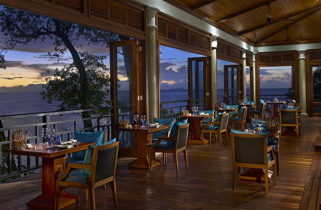—Ресторан Hilltop, розташований на вершині пагорбів, має чудовий панорамний вид на природу Сейшельських островів; на сніданок та обід тут подається "шведський стіл" зі страв міжнародної та місцевої кухні, а ввечері в ресторані проводяться тематичні вечори. — Ресторан Les Cocotiers, що розташований на відкритому повітрі, пропонує страви креольської та інтернаціональної кухні ф'южн у форматі "a la carte" (обслуговування по меню), а також чудовий панорамний вид на океан. - Бар-ресторан Oceanview пропонує насолодитися улюбленим кокетейлем або свіжим соком у супроводі живої музики, а також чудовим видом на океанські бухти; Крім того, гості можуть замовити романтичну вечерю при свічках на пляжі.