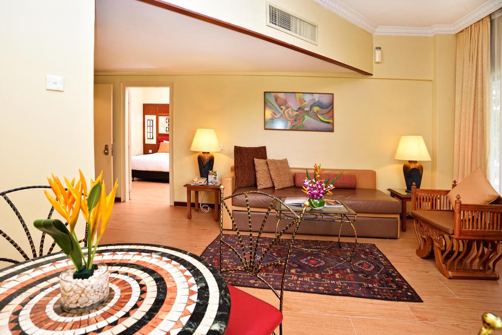 Отель включает в себя номера, шале и апартаменты класса люкс с видом на сад или бассейн. К вашему вниманию предлагаются номера следующих категорий: Superior Room (Single), Superior Room (Twin), Deluxe Room (Single), Deluxe Room (Twin), Deluxe Premium (Single), Deluxe Premium (Twin), Studio Room, Deluxe Suite, Prima Suite, Crystal Suite, Antara Suite, Royal Suite. Оснащение номеров: кондиционер, телевизор со спутниковыми каналами, прямая телефонная система, широкополосный доступ в Интернет, рабочий стол, фен, предметы личной гигиены, электронный сейф, набор для кофе / чая. Также предлагается круглосуточное обслуживание номеров.