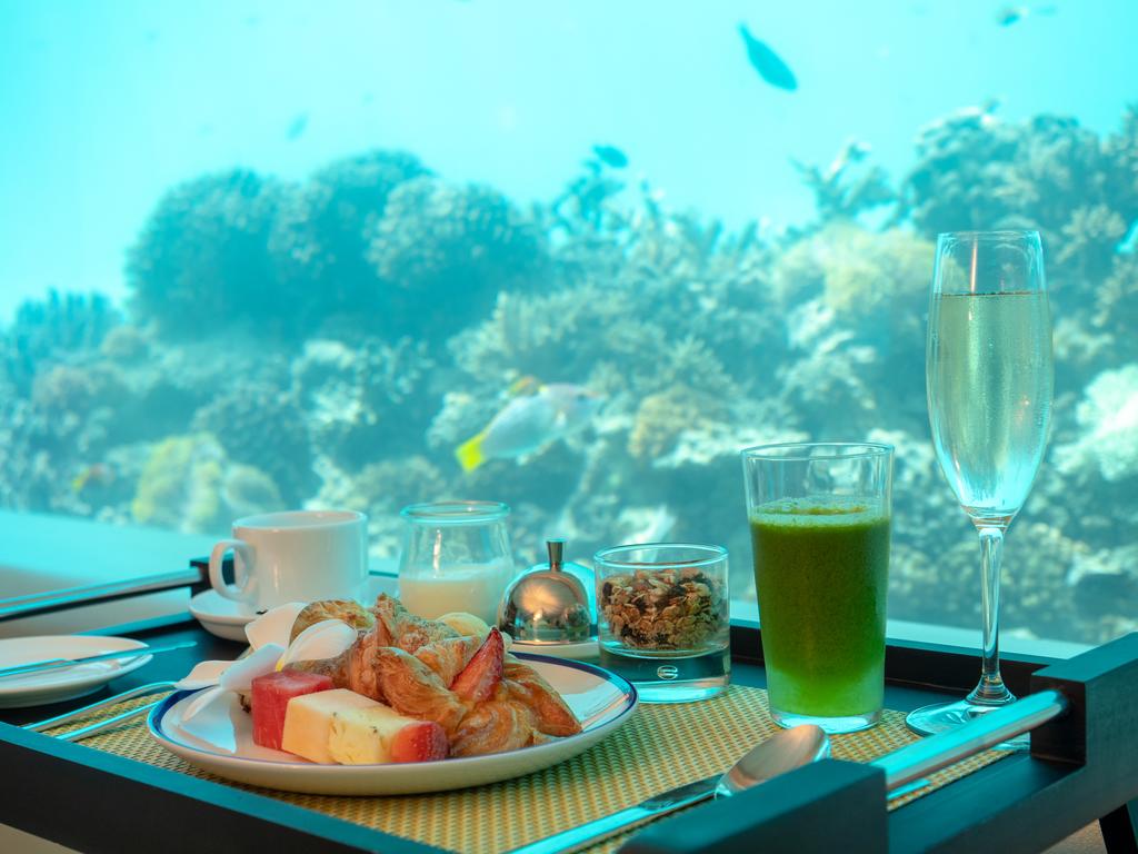 Ресторан "Celsius" пропонує страви інтернаційної кухні. У ресторані "Salt" над водою працює відкрита кухня і подають страви зі свіжих морепродуктів. У барі Vinum представлений широкий асортимент вин. У цьому готелі знаходиться перший на Мальдівах підводний бар Blue. Є також підводний винний льох.