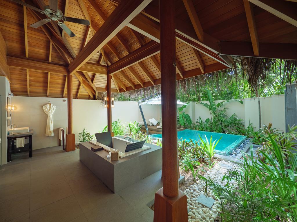 У готелі 44 номери. 8 Beach Bungalows with Jacuzzi Pool (100 кв.м); 8 Beach Bungalows with Plunge Pool (170 кв.м); 2 Beach Pavillions with Private Pool (600 кв.м) – додатково: 2 спальні, вітальня, кухонний куточок, басейн, джакузі (з маленьким басейном); максимальне розміщення – 4 дорослих + 4 дитини до 12 років або 6 дорослих; 12 Lagoon Bungalows with Plunge Pool (120 кв.м) – водні бунгало з маленьким басейном. 12 Ocean Bungalows with Infinity Pool (160 кв.м) -водні бунгало з просторішими номерами. Додатково: душ на вулиці, частина підлоги на терасі - з прозорим дном. 2 Ocean Pavillions with Private pool (300 кв.м) - водні бунгало з видом на захід сонця, спальня, вітальня, 2 тераси, басейн - з маленьким басейном - максимальне розміщення -4 дорослих + 4 дитини до 12 років або 6 дорослих. У всіх просторих бунгало є тераса для засмаги, кондиціонер, стельовий вентилятор, IDD телефон, міні-бар, великий телевізор з плоским екраном та супутниковими каналами, аудіосистема Bose та DVD-плеєр, espresso-машина, сейф, фен, ванна кімната з тропічним душем та окремою ванною та туалет. Усі наземні бунгало мають власний пляж.