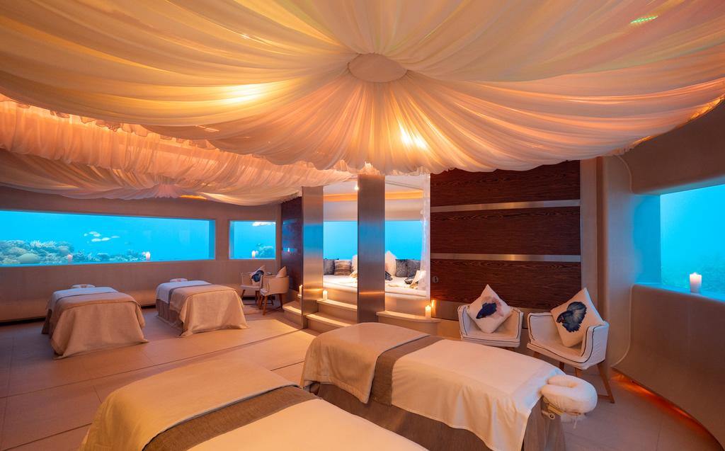 Розкішний курортний готель Huvafen Fushi розташований на атолі Північне Мале, за 25 хвилин їзди на швидкісному катері від міжнародного аеропорту Мале. У готелі розташований єдиний зі світу підводний спа-салон.