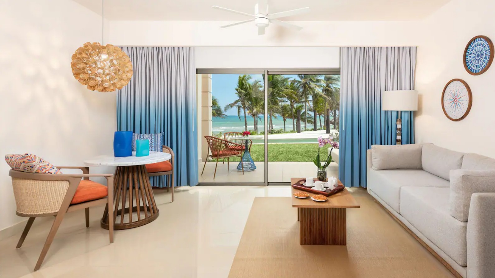 Water Park/Tropical/Pool View/OV/Ocean Front Junior Suite King – 62 м², макс. 4 чол. | ліжко king-size або 2 double, диван-ліжко, власний мебльований балкон