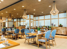 Ресторан Ouzo: сніданок 07:30-11:00, обід a la carte 12:30-17:00, вечеря 18:30-21:30, грецька кухня, шеф-кухар Лефтеріс Лазару, вечеря по попередньому бронюванню. Ресторан Fresco: вечеря 18:30-21:30, міжнародна кухня, шеф-кухар Етторе Ботріні, за попереднім бронюванням. Ресторан Provence: сніданок 07:30-11:00, обід a la carte 12:30-17:00, вечеря 18:30-21:30, французька кухня, шеф-кухар Ентоні Жанно. Ресторан Anaya: вечеря 18:30-21:30, азіатська кухня, шеф-кухар Тіу, попереднє бронювання. Ресторан Flavors: шведський стіл, сніданок 07:30-11:00, обід 12:30-14:30, вечеря 18:30-21:30, шеф-кухар Янніс Василіадіс, середземноморська кухня. У ресторанах діє дрес-код.