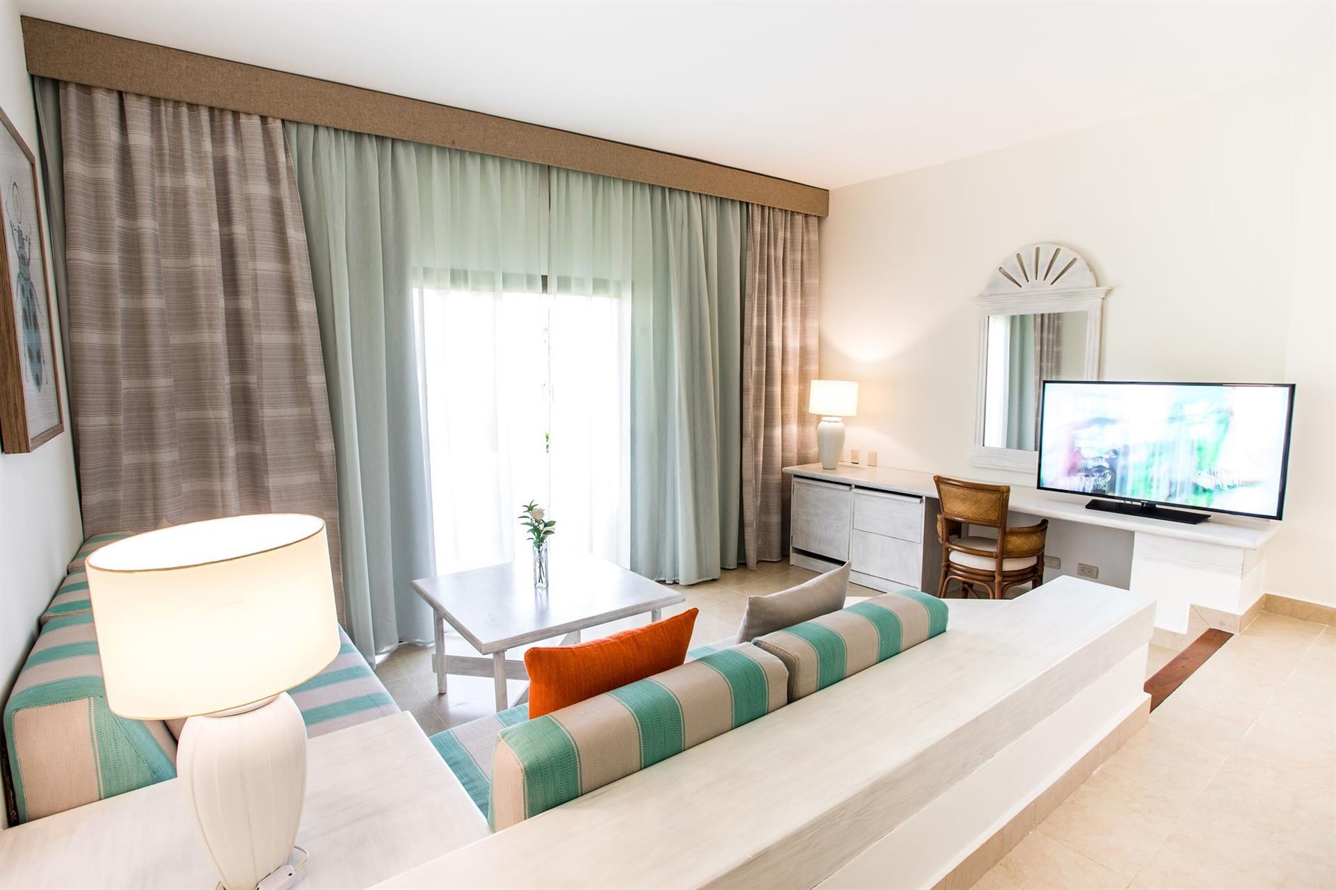 Всього 614 номерів: Junior Suite (45 м2, макс. 3+1 чол.) зони вітальні та спальні з перепадом висоти на один рівень, ліжко king-size або 2 двоспальні ліжка, вид на сад, ванна кімната; Ocean Front Junior Suite (45 м2, макс. 3+1 чол.) зони вітальні та спальні з перепадом висоти на один рівень, ліжко king-size або 2 двоспальні ліжка, вид на море, ванна кімната, вхід до SPA-центру – термальний цикл; Superior Junior Suite (45 м2, макс. 3+1 чол.) у спокійній зоні, ближче до пляжу, підготовка ліжка до сну з ароматерапією, вхід до SPA-центру – термальний цикл, вид на сад або озеро, ліжко king-size або 2 двоспальні ліжка, ванна кімната; SPA Junior Suite (45 м2, макс. 3+1 чол.) ліжко king-size або 2 двоспальні ліжка, балкон з видом на сад або озеро, розташовані ближче до спа-центру та вхід до SPA-центру – термальний цикл, підготовка ліжка до сну, невеликий кредит для відвідування спа; Junior Suite Pool Access (макс. 3+1 чол.) ліжко king-size або 2 двоспальні ліжка, вітальня, прямий вихід до басейну; Two Bedroom Family Junior Suite (макс. 4+2/6+0 чол.) вітальний подарунок для дітей (шоколадні цукерки) та дорослих (пляшка рому), іграшки для дітей, банні халати для дорослих та дітей, міні-бар із соками та закусками, PlayStation у кімнаті, безкоштовний нагляд за дітьми вночі (22:00), один раз за весь період проживання (діти віком від 4 до 12 років). У намерахroom service: цілодобово, кавоварка, ванна та душ, будильник, праска: є, зміна білизни: через день, кондиціонер: є, балкон, Інтернет: Wi-Fi, безкоштовно, капці, прасувальна дошка: є, сейф: у номері, безкоштовно, стельовий вентилятор, зміна рушників: щодня, міні-бар , безкоштовно (вода, пиво та прохолодні напої), прибирання номера: щоденно, телевізор: є, фен: є, халат, телефон