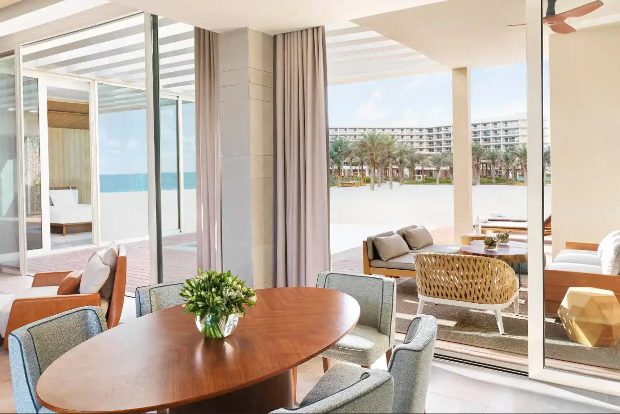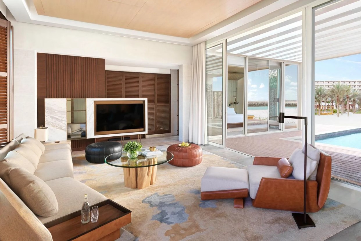 One Bedroom Beachfront Pool Villa- вілли з басейном на березі моря площею 150 кв. м майстерно поєднують сутність арабської естетики зі стильними сучасними інтер'єрами та найсучаснішими технологіями. У ванних кімнатах встановлені глибокі гідромасажні ванни та розкішні туалетні приналежності. Приватні тераси оснащені шезлонгами та приватним басейном, призначеним виключно для вас і ваших гостей.