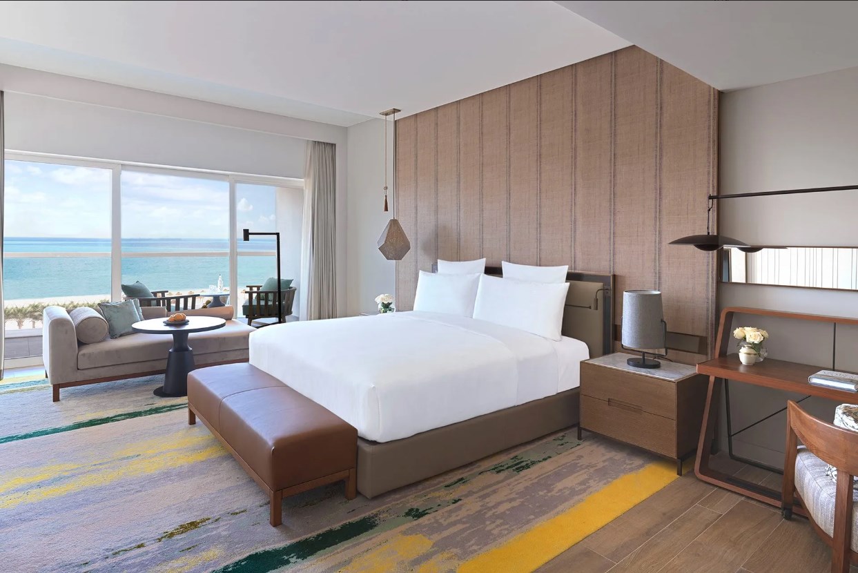 Завітайте до просторих номерів з великою кількістю природного світла, преміальними зручностями та елегантною естетикою, що відображає спадщину регіону. Насолоджуйтесь ідеальними панорамами Перської затоки, попиваючи ранкову каву на балконі, розслабтеся напоєм з міні-бару перед вечерею і пориньте у розкішне ліжко з настанням темряви. У кожному номері є окрема ванна кімната з тропічним душем, великий телевізор з плоским екраном і система IPTV.