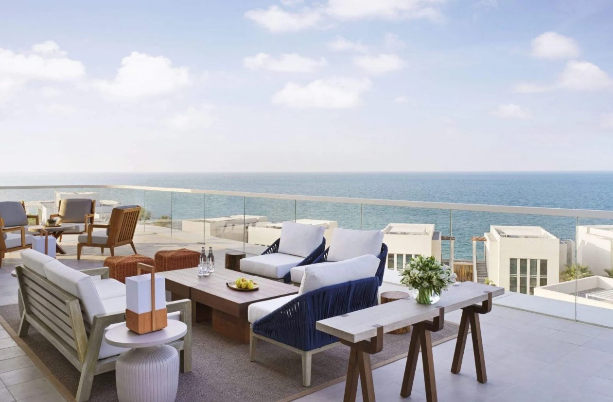 Presidential Suite Panoramic Sea View- люкс з однією спальнею площею 200 кв.м. знаходиться в декількох кроках від пляжу. Відпочиньте на розкішному двоспальному ліжку або розслабтеся у глибокій ванні з розкішними зручностями. Просторий відкритий простір - ідеальне місце, щоб насолодитися захоплюючими краєвидами та теплим арабським сонцем.