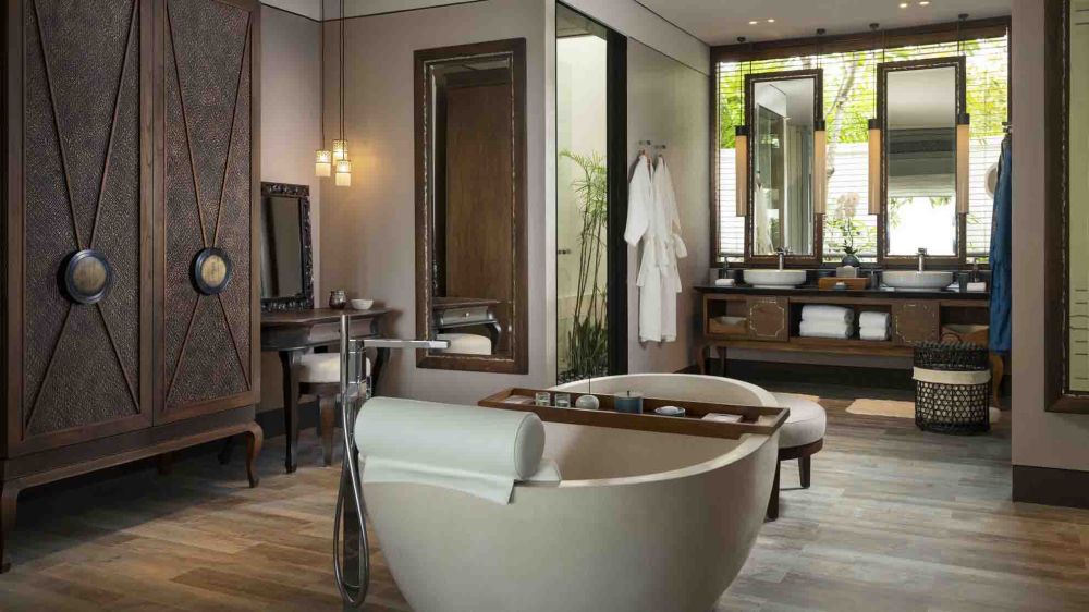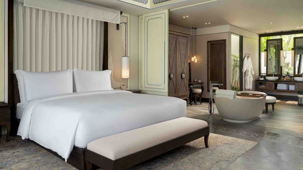 Нумерний фонд: 119 вілл. Garden Villa Private Pool – 210 м², макс. 3/2+2 (до 11 років) чол. | ліжко king-size, вбиральня, ванна кімната з душовою та ванною, з власним басейном та видом на сад Маджапахіт, де ростуть одні з найцінніших дерев Індонезії. Sunset Villa Private Pool – 210 м², макс. 3/2+2 (до 11 років) чол. | ліжко king-size, вбиральня, ванна кімната з душовою та ванною. Помаранчеві і рожеві промені вранішнього сонця — вид на захід сонця з власної спальні, що запам'ятовується, на розкішній віллі з видом на море. Ocean Villa Private Pool – 210 м², макс. 3/2+2 (до 11 років) чол. | ліжко king-size, вбиральня, ванна кімната з душовою.Відпочиньте на цій елегантній віллі в мальовничому місці, де можна чудово відновити сили, милуючись просторами Індійського океану. У номерах вентилятор ,TV Міні-бар Wi-Fi Тераса Халат, тапочки,  Набір для приготування чаю/кави Басейн,  Душ просто неба,  Послуги батлера.