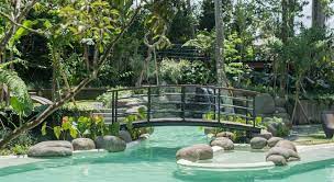 У готелі є пара басейнів: один із широким 24-метровим переливом; інший - звивистий басейн «річка в джунглях», оточений валунами та пальмами. Обидва пропонують безліч варіантів відпочинку біля басейну, перший розташований поруч із рестораном Kelapa, а інший має невелику коктейльну хатину. Спостереження хвилястих рисових полів недостатньо розслаблює, спа-салон OmTara готелю допоможе вам досягти блаженного рівня безтурботності. Він займає площу 1000 квадратних метрів і включає сім процедурних кабінетів, сауну, турецьку лазню, душ Віші і кілька басейнів. Першокласні процедури підтримуються продуктами Clarins та екстрактами з більш ніж 200 рослин та ефірних олій, деякі з яких вирощені у власній пермакультурі готелю. Після процедури ви можете повернутись до свого споглядання в панорамному лаунджі спа-салону.