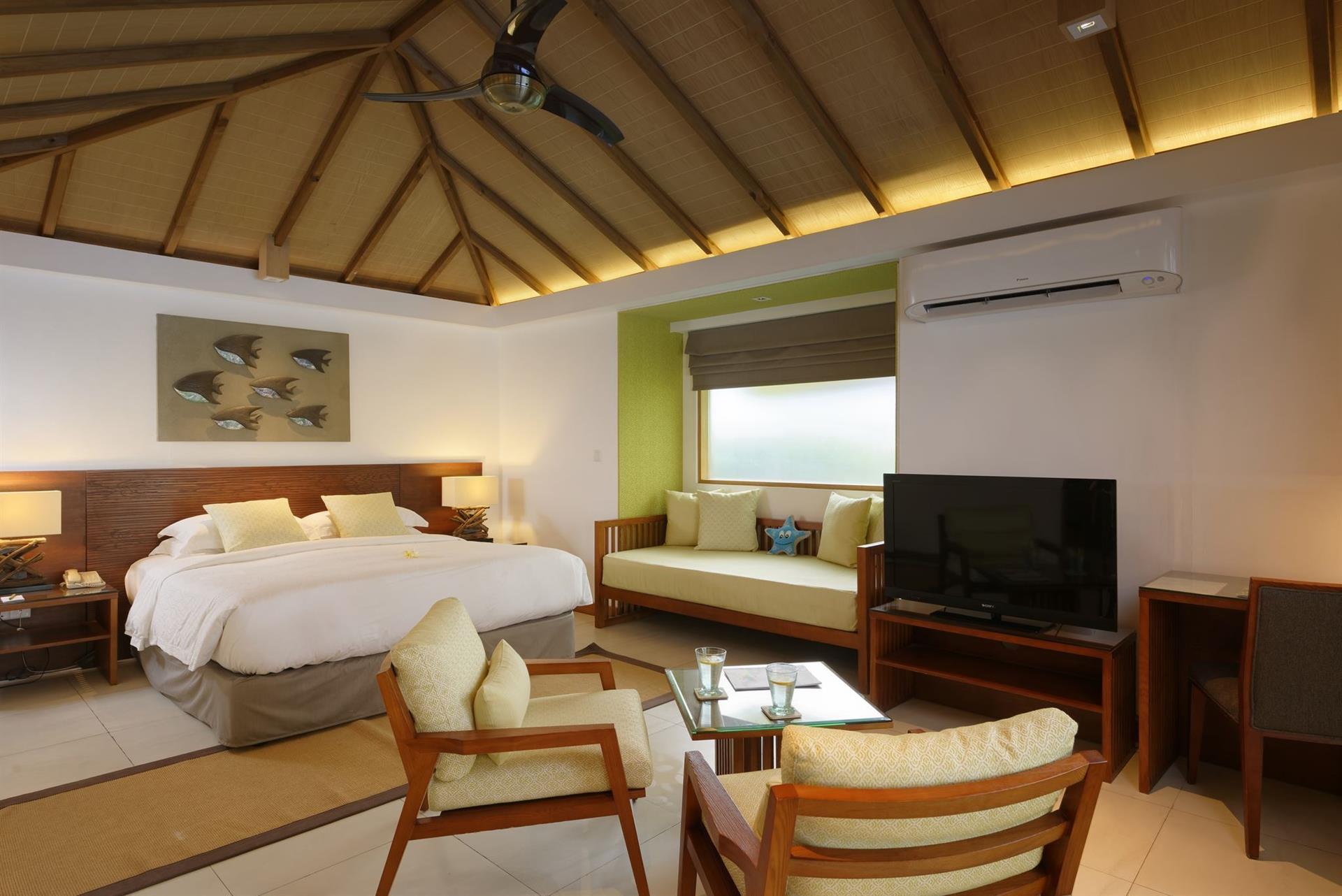 Усього в готелі 180 номерів. 38 Superior Room (74 м2, макс. 3 або 2+1 чол.). Двоповерхові будиночки на 4 номери, простора ванна кімната з окремою ванною, 2 душа (в приміщенні та просто неба), балкон або тераса. Ліжко queen-size або twin, є суміщені номери (interconnecting). 73 Deluxe Bungalow (74 м2, макс. 3 або 2+2 чол.). Одноповерхові бунгало, що окремо стоять, в деякому віддаленні від берега. Ліжко king-size або twin, ванна кімната з окремою ванною і душем, душ просто неба, міні-сад, тераса. 33 Beachfront Deluxe Bungalow (74 м2, макс. 3 або 2+2 чол.). Окремі одноповерхові бунгало з панорамним видом на океан, розташовані за кілька кроків від пляжу. Ліжко king-size, DVD-плеєр, кавоварка Nespresso. Ванна кімната з окремою ванною і душем, душ просто неба, міні-сад. 8 Garden Pool Villa (124 м2, макс. 3+1 або 2+2 або 2+1+1 inf.). Вілли в саду розташовані в блоках по 2 номери. Вітальня і спальня з розсувними дверима, внутрішній дворик з душем на відкритому повітрі і неглибоким басейном, простора ванна кімната з окремою ванною, душем і виходом у міні-сад. Гардеробна, DVD-плеєр, акустична система Bose Mini Bluetooth, кава машина Nespresso, ліжко king-size, 2 тахти у вітальні. 6 Beach Villa (103 м2, макс. 3+1 або 2+2+1 inf.). Берегові вілли (4 окремо стоять, 2 – в одному поєднаному блоці): вітальня, спальня (між вітальнею та спальнею розсувні дерев'яні двері), ліжко king-size. Внутрішній дворик з душем на відкритому повітрі та джакузі, простора ванна кімната з ванною, душем та виходом у міні-садок. Кавомашина Nespresso, DVD-плеєр, акустична система Bose Mini Bluetooth. 17 Deluxe Pool Villa (160 м2, макс. 3 або 2+2 чол.). Частина вілл розташована на березі, частина – у саду з видом на океан. Вітальня та спальня з розсувними дверима, ліжко king-size, басейн у саду, ванна кімната з ванною та душем, душ на відкритому повітрі, тераса з шезлонгами. Кавомашина Nespresso, холодильник, DVD-плеєр, акустична система Bose Mini Bluetooth, приватна альтанка з тахтою. 4 Family Villa (306 м2, макс. 3 або 2+2+1 inf.). Двоповерхові вілли, що окремо стоять. На 2-му поверсі: спальня з ліжком king-size і видом на океан, гардеробна зона, ванна кімната з ванною, внутрішнім душем і душем на відкритому повітрі. На 1 поверсі: зона відпочинку, гостьовий душ, веранда з виходом на пляж, приватний басейн в саду, обідня зона, шезлонги, акустична система Bose Mini Bluetooth, кавомашна Nespresso, винний холодильник, DVD-плеєр. Послуги батлера (24 години). 1 Two Bedroom Kurumba Residence (768 м2, макс. 6 або 4+2+2 inf.). Розкішна окрема вілла. Простора вітальня, 2 спальні з ліжками king-size та окремими ванними кімнатами, зонами вбиральні, двома басейнами з функцією джакузі, виходом на пляж. Акустична система Bose Mini Bluetooth, кава-машина Nespresso, винний холодильник, DVD-плеєр. Послуги батлера (24 години). У номерах: телевізор: плазмова панель (російські канали), кондиціонер: є, міні-бар платно, ванна, прасувальна дошка: є, праска: є, дзеркало для макіяжу, послуги батлера (в Presidential Pool Villa, Royal Kurumba Residence), вентилятор, пляжна сумка, прибирання номера: 2 рази на день, сейф: є, набір для приготування чаю/кави (і гарячого шоколаду), халат, тапочки (пляжні), басейн (Garden Pool Villa, Deluxe Pool Villa, Presidential Pool Villa, 2 – Royal Kurumba Residence), кавоварка (Nespresso - крім Superior Room, Deluxe Bungalow), CD/DVD-програвач (за винятком Superior Room, Deluxe Bungalow), підлога: дерев'яна, телефон, зміна білизни: через 2 дні (кожен день на запит), фен: є, Інтернет: Wi-Fi, безкоштовно, душ (в приміщенні та на відкритому повітрі), ліжко queen або king-size (twin тільки в номерах Superior, Deluxe Bungalow), балкон (у Superior Room та Presidential Pool Villa) та/або тераса, холодильник (Deluxe Pool Villa, Presidential Pool Villa, Royal Kurumba Residenc