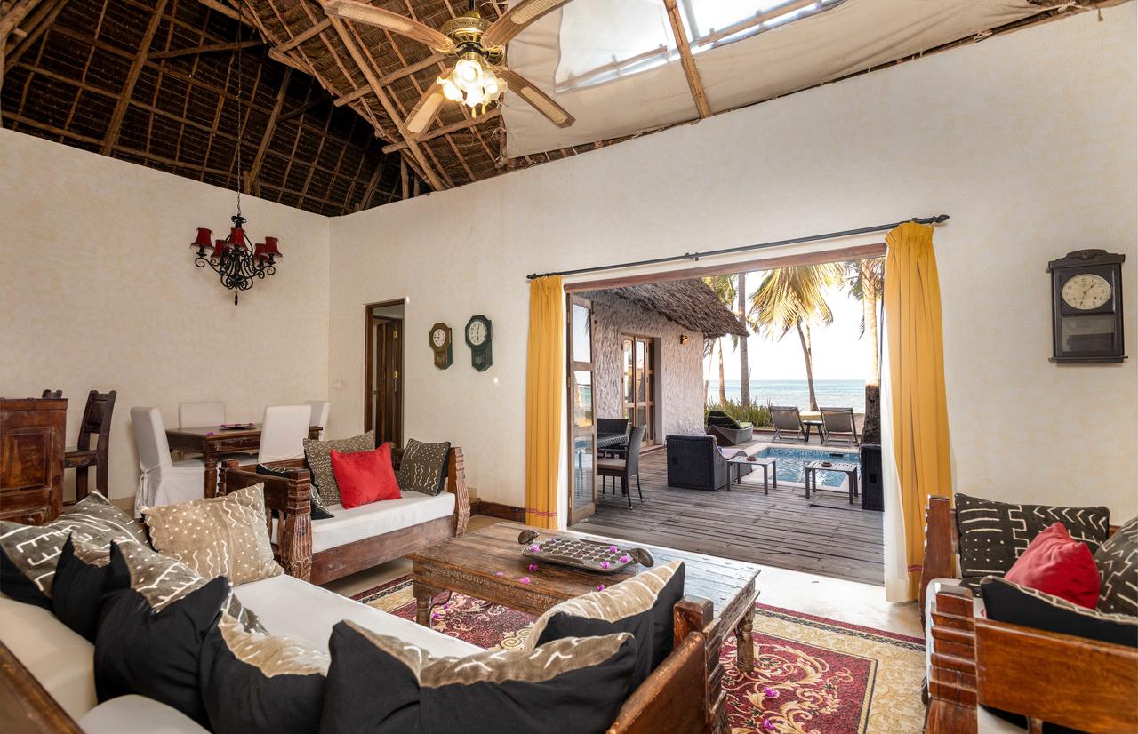 Просторі номери та люкси оформлені в занзібарському стилі і мають балкон.