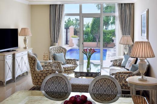 2 Bedroom Family Apartment with Private Pool (нижній поверх, без виду, 2 спальні (king-size і twin), вітальня, обладнана кухня, обідня зона, є міжкімнатні двері, 2 ванні кімнати, кімната-пральня, басейн 3х5 м, 150 м2)