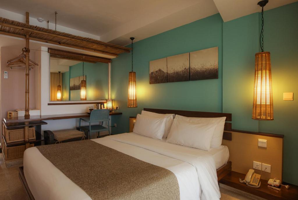 Готель пропонує Standard rooms, Deluxe rooms та Family rooms, всі з яких виходять на море та мають балкон або терасу.