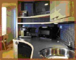 В номере: двухъярусная кровать для двух персон, гостинна с двумя одномесными кроватями, кухонный уголок (микроволновая печь, кофеварка, холодильник), ванная комната (душ, фен), сушильный шкаф для одежды, гладильные принадлежности, телевизор, телефон. Номер 27 квадратных метров.