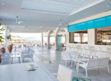 "Estia" основний ресторан "Pelagos" ресторан та бар біля басейну "Meltemi" ресторан та бар на пляжі "Vergina" лаунж-бар