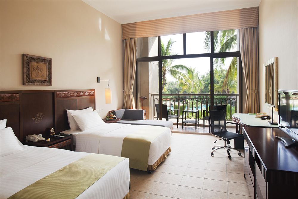 Расположен на популярном пляже с белым песком на берегу залива Yalong, в 3х часах езды от города - Хайкоу, в 30 мин. езды от международного аэропорта.