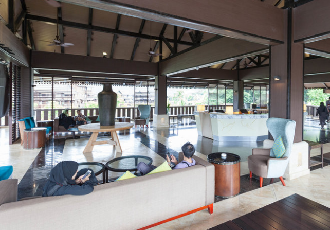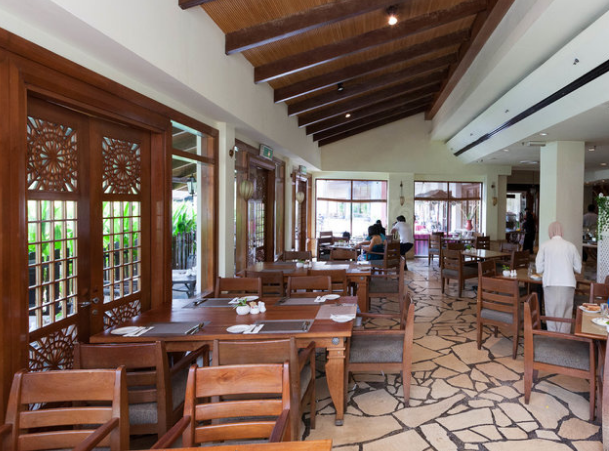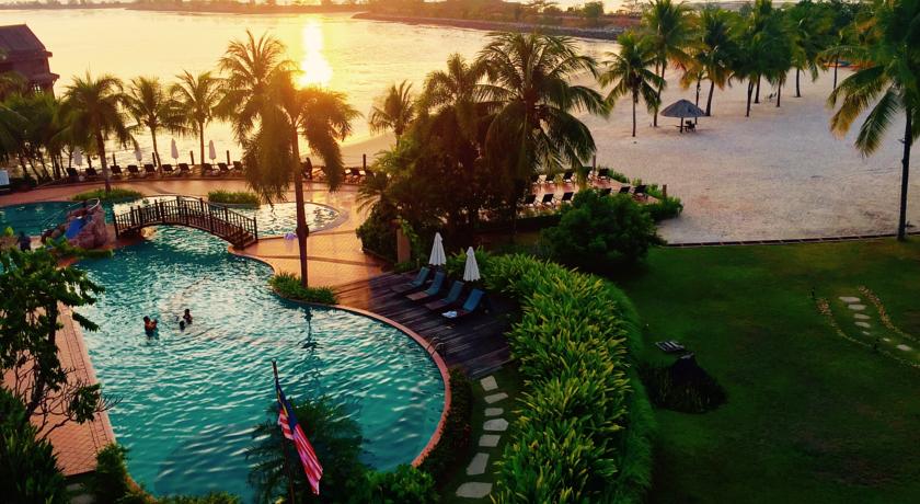 Предлагаемые в ресторанах и барахблюда и коктейли поразят даже самых искушенных гурманов. — Ресторан морепродуктов Rajawali расположен в удивительно красивом месте у истока реки Sungai Melaka. Во время обеда или ужина можно увидеть рыбаков, возвращающихся с уловом, который приготовят Вам. На выбор предлагаются блюда местной кухни, а также китайской и японской. — Пивная Anjung предлагает отведать блюда как местной, так и международной кухни, наслаждаясь чудесным видом бассейна и моря. Для желающих поужинать в более интимной обстановке имеются отдельные обеденные залы. Особо приятно отведать знаменитое малазийское барбекю прямо на пляже, наслаждаясь закатом. А также заказать барбекю прямо в номер. — В баре, расположенном в холле отеля, большой выбор экзотических коктейлей, а в определенное время можно воспользоваться специальными предложениями и выпить коктейль бесплатно.
