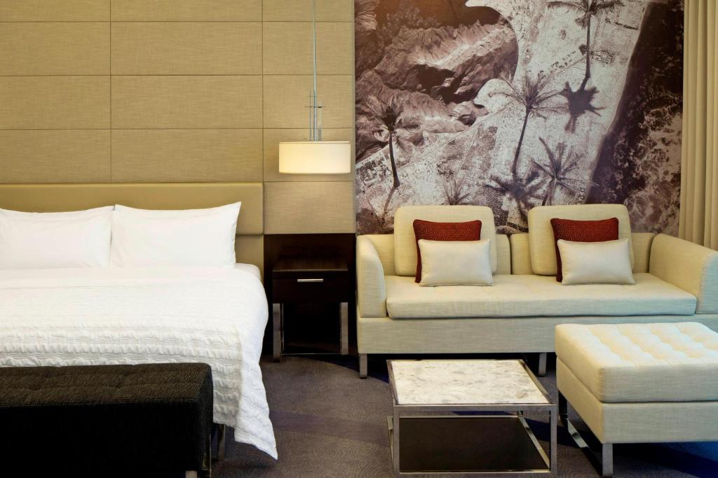 Кожен з 218 номерів готелю Le Méridien Al Aqah Beach Resort має вікна від підлоги до стелі, з яких відкривається чудовий вид на море, а також на басейн, пляж, сади та ландшафтний дизайн. Розміри номерів варіюються від 48-метрових номерів Делюкс з видом на Індійський океан до пентхаусів площею 750 квадратних метрів, а 88 номерів Делюкс пропонують розкіш приватного балкона з видом на море. П'ять верхніх поверхів курорту відведено під 35 клубних лаунж-номерів і люксів, де гостям пропонується широкий спектр ексклюзивних послуг, включаючи експрес-реєстрацію заїзду та виїзду, високошвидкісний доступ до Інтернету, широкий асортимент безкоштовних закусок протягом дня, а також доступ до клубного лаунжу з щоденною вечірньою «Щасливою годиною». 10 представницьких люксів нашого готелю у Фуджейрі вдвічі більші за звичайні номери з окремими зонами вітальні та їдальні, спальнею та міні-кухнею, що робить їх ідеальними для сімейного відпочинку. Усі люкси мають власну терасу та балкон з видом на океан.