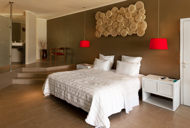 - 12 Deluxe Rooms (45 м², макс. 2 людини в номері) - просторий номер відкритого планування з широким диваном і власною просторою терасою з журнальним столиком, стільцями і шезлонгами, звідки відкривається чудовий вид на блакитну затоку і білий пляж Бо-В.