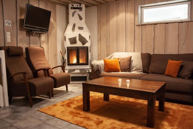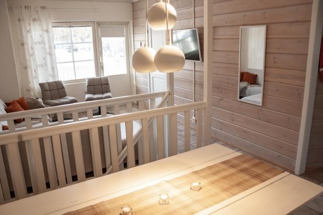 Триповерховий котедж в альпійському стилі розташований у центрі Леві. Побудовано у 2000 р., частково оновлено у 2012 р., сауну оновлено у 2009 р. Відстані:розташований у самому центрі Леві, біля головного схилу, навпроти Арени Уллу Поро. Головний схил 40м, лижні траси 30м, Арена Уллу Поро 30м, Левітори (центральний ринок) 300м, спа-центр 400м, Леві-Маркет (продуктовий магазин) 450м, аптека 450м, винний магазин 700м, поштове відділення 900м 2 км. У котеджі 46,5 м² + 29,5 м², цокольний поверх будинку:вхід із другого поверху; максимальне розміщення 8 дор. + 2 дитини (4 спальні) Важливо:- Розміщення з домашніми тваринами не допускається, куріння заборонено на всій території
