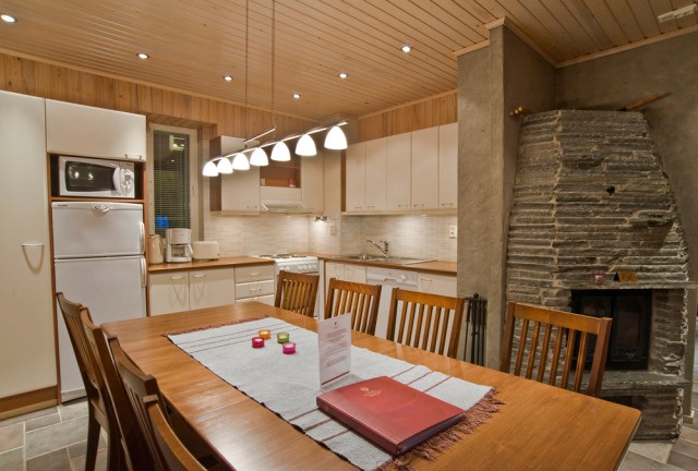 У котеджі:апартамент розташований на одному рівні (перший поверх котеджу) 67m2;максимальне розміщення 6 дор. (3 спальні);Вітальня з відкритою кухнею, камін, електрична сауна, ванна кімната, окремий туалет та передпокій .Обладнання: посуд та кухонне обладнання, плита, духовка, посудомийна машина, холодильник з морозильною камерою, мікрохвильова піч, чайник, кавоварка, тостер, CD-плеєр, DVD, телевізор, сушильна шафа, прасувальне обладнання, фен, дрова, кондиціонер.