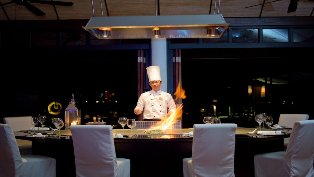 На територии отеля 4 ресторана и 3 бара. В главном ресторане под открытым небом Lily Maa с панорамным видом на лагуну в течение всего дня накрыт «шведский стол». Здесь также можно попробовать более 70 сортов вин премиум-класса. В ресторане Tamarind подаются блюда индокитайской кухни в стиле фьюжн, а в ресторане The Wave — свежие омары. На завтрак для гостей могут приготовить блюда китайской кухни.