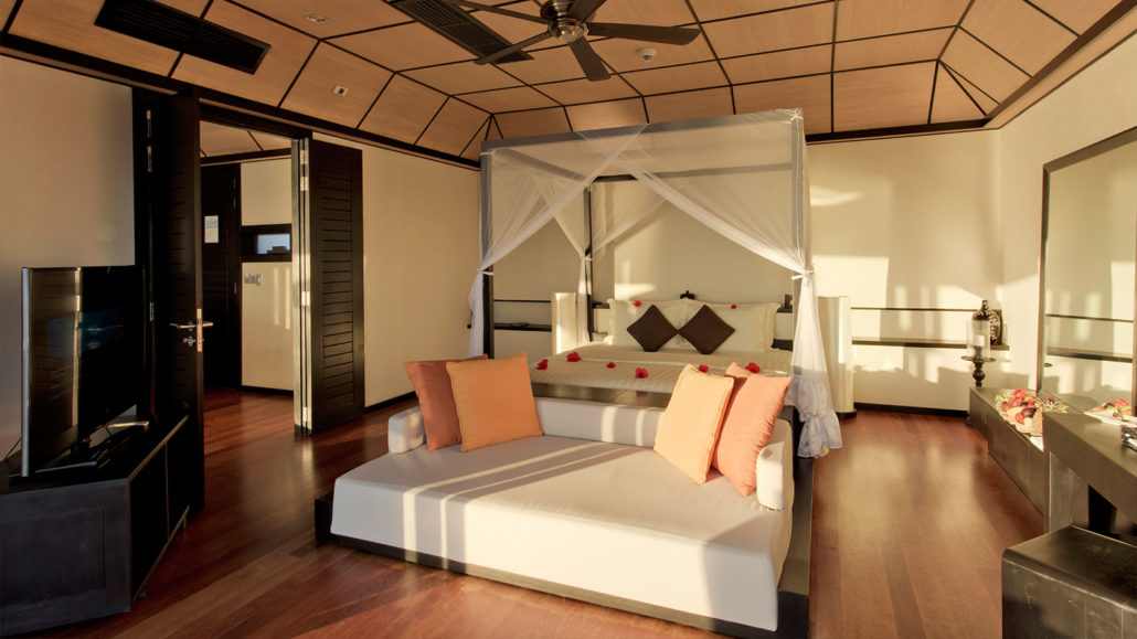 К услугам гостей отеля 131 вилла. 69 Beach Villas– здесь можно в полной мере насладиться красотой местной природы, которая открывается прямо у порога, виллы утопают в зарослях пышной растительности, в нескольких шагах от ласкового Индийского океана и от основной части отеля. 6 Family Villas– обустроены специально для того, чтобы как можно больше и лучше проводить время в окружении близких. 16 Lagoon Villas– имеют отдельную террасу с прямым доступом к лагуне в окружении тропической природы. 36 Deluxe Water Villas (комплекс вилл класса люкс) – идеальный выбор для тех, кто стремится к уединенности в простой, но притом невероятно стильной обстановке. 4 Sunset Water Suites – имеют прекрасный дизайн и открытый вид на сверкающий океан с кристально чистой водой, куда можно соскульзнуть прямо с площадки для солнечных ванн.