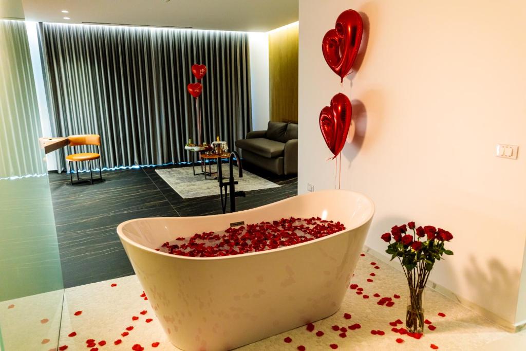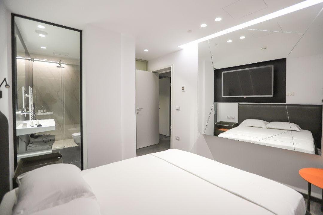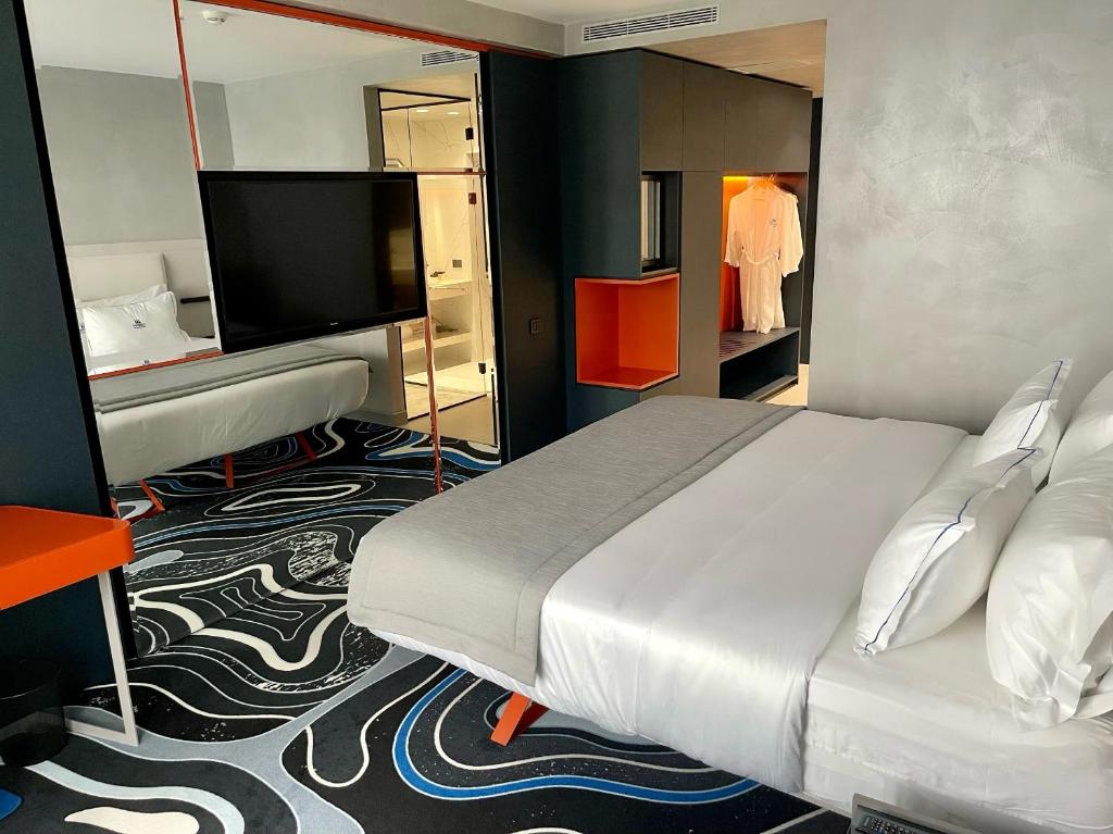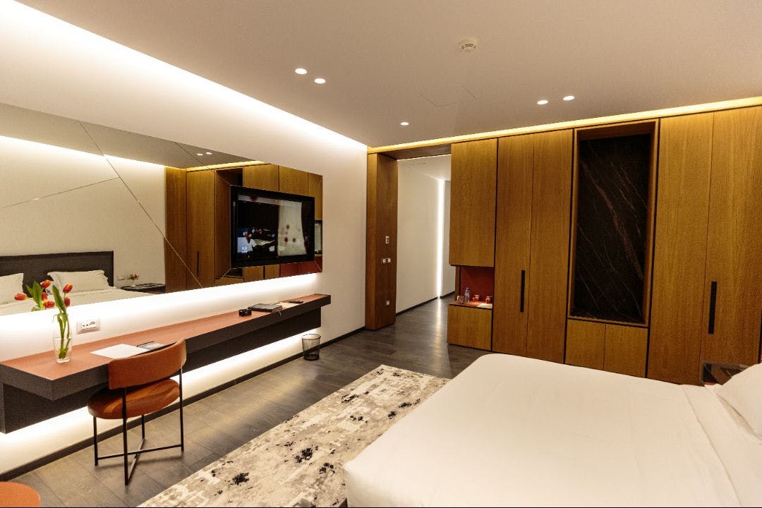 JUNIOR SUITE / JUNIOR SUITE DELUXE, близько 97 м², двокімнатний напівлюкс, розділений коридором на спальню з двоспальним ліжком King size та невелику вітальню з диваном, який може бути спальним місцем для 2-х осіб. Максимальне розміщення – 4 дорослих та 1 дитина до 5 років (спить у дитячому ліжечку або разом з батьками). Усього в готелі 10 номерів. Вони поділяються за наявності виду на море на: ● Junior Suite - без виду на море або з частковим виглядом, оскільки вид блокує будівлю, що попереду стоїть; ● Junior Suite Deluxe – з прямим видом на море. FAMILY JUNIOR SUITE / FAMILY JUNIOR SUITE DELUXE, близько 97 м², двокімнатний сімейний напівлюкс, розділений коридором на дві спальні: у першій - двоспальне ліжко King size, у другій - два ліжка (100х200). Максимальне розміщення – 4 дорослих та 1 дитина до 5 років (спить у дитячому ліжечку або разом з батьками). Усього в готелі 10 номерів. Вони поділяються за наявності виду на море на: ● Family Junior Suite - без виду на море або з частковим виглядом, оскільки вид блокує будівлю, що попереду стоїть. ● Family Junior Suite Deluxe – з прямим видом на море. FAMILY SUITE / FAMILY SUITE DELUXE, близько 107 м², трикімнатний сімейний люкс, розділений коридором на дві спальні та вітальню. У першій спальні - двоспальне ліжко King size, у другій - два полуторні ліжка (100х200), у вітальні - диван, який може бути використаний як додаткове спальне місце для 1-2 осіб. У цьому номері є дві ванні кімнати. Максимальне розміщення: 4 дорослих та 1 дитина до 5 років (спить у дитячому ліжечку або разом з батьками) + 1-2 особи на дод. місцях за доплату. Всього в готелі є 2 номери, які відрізняються видом: ● Family Suite - з частковим видом на море, оскільки вид блокує будівлю, що попереду стоїть; ● Family Suite Deluxe – з прямим видом на море. SUITE/SUITE DELUXE, близько 97 м², просторий люкс для пари, поділений на зону спальні та зону вітальні. У спальні – двоспальне ліжко King size, у вітальні – диван, який може бути додатком