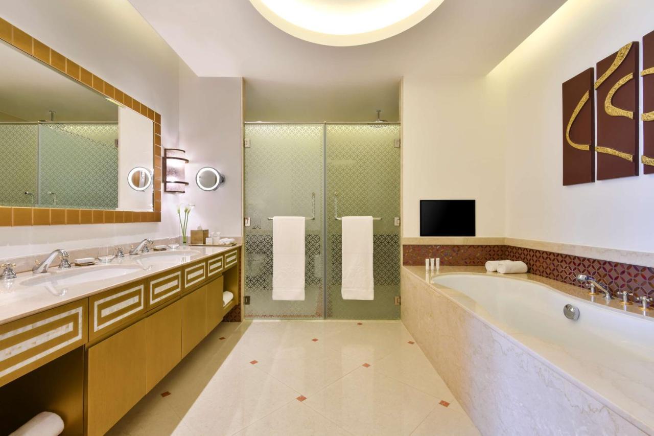 Deluxe room- площею 75 м² створені для забезпечення неперевершеного комфорту та відпочинку. Виберіть номер з ліжком розміру «king-size» (220 см x 200 см) або двома односпальними ліжками (110 см x 200 см) з просторим балконом і терасою з видом на приголомшливий район The Pearl Qatar, або на басейн чи на море. Premium Suite- площею 185 м², обладнаний двоспальним ліжком розміром 200 × 220 см і має просторий балкон та терасу з вражаючим видом на сади, басейни, приватний пляж і спокійні води, що оточують The Pearl-Qatar. Люкси мають велику вітальню з зоною відпочинку, їдальню та простору спальню, всі вони оформлені у вишуканому стилі, з використанням найкращих матеріалів та розкішних природних оздоблень. Grand Deluxe Suite- площею 135 м² пропонує захоплюючий вид на острів Марса Малаз і Перську затоку. Спальня обладнана двоспальним ліжком розміром 220 х 200 см, а також просторим балконом і терасою для найкращого відпочинку як у приміщенні, так і на свіжому повітрі. Спальня оформлена в спокійних тонах і обладнана зручними меблями та ручно різьбленими арабськими колекційними предметами. Marsa Malaz Suite- площею 200 м² має ліжко розміру «king-size» (220 х 200 см) та вражаючий відкритий балкон і терасу з безмежним видом на кришталево-блакитні води, що оточують острів Марса Малаз. Розкішно оформлений в арабському стилі, має велику вітальню та простору спальню. Люкс з'єднаний з просторим номером Deluxe для додаткового сімейного простору. Panoramic Suite- площею 230 м² має простору внутрішню та зовнішню зону відпочинку з балконом і терасою з видом на блакитні води Перської затоки. Ретельно продумана спальня має вікна від підлоги до стелі, які забезпечують вражаюче природне освітлення та широкий вид, окрему вітальню, обідню зону та ванну кімнату. У спальні встановлено ліжко розміру «king-size» (200 см x 220 см). Зручності у номері: Приладдя для приготування кави та/або чаю Письмовий стіл Міні-бар Гардеробна Ванна та окремий душ