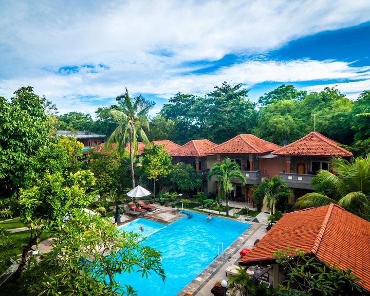 Курортний готель Melasti Beach Bungalow розташований у тропічному саду на пляжі Кута-біч. До послуг гостей 2 відкритих басейни, спа-салон, різні косметичні процедури для обличчя та тіла, безкоштовна автостоянка та Wi-Fi. Готель Melasti Beach Bungalow розташований на пляжі Kuta Beach, за 100 м від центру Кути, поблизу аквапарку Waterbom, ресторанів, барів, туристичних визначних пам'яток, в 200 м від великого торгового центру Discovery Shopping Mall. До міжнародного аеропорту Нгурах-Рай 2,24 км (5-10 хвилин їзди). Аеропорт: Міжнародний аеропорт Нгурах-Рай – 2.24 км.