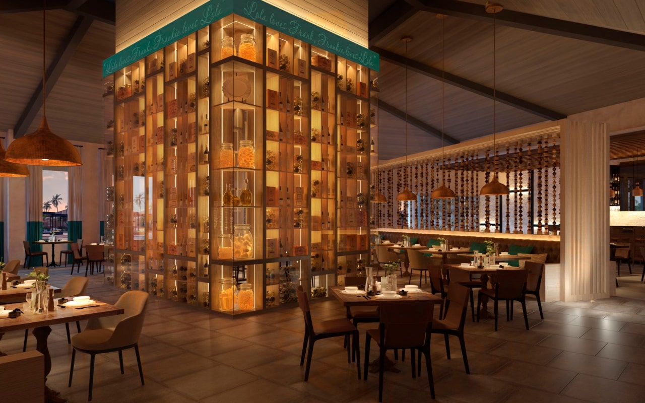 The Boat House – ресторан міжнародної кухні. Відкритий для сніданків, обідів та вечерь. Landshark Brewery & Grill – ресторан-бар. Коптильня, табір. Відкритий для обідів та вечерь. Frank & Lola's Italian Trattoria - тратторія. Італійська кухня. Концепція «відкриті» кухні. Багата винна карта. Відкритий для вечері. JWB Steakhouse - ресторан-бар. Стейки, фірмові коктейлі. Відкритий для вечері. Mon SO Wi - ресторан паназіатської кухні. Відкритий для вечері. West Indies Rum Runners є ресторан-бар. Страви карибської кухні, ром. Розташований поряд з басейном та пляжем. Punch Bar & Lounge - бар. Коктейлі, пиво. Жива музика. Joe Merchants Coffee & Provisions - бар. Закуски, напої, домініканський кави. Five O'Clock Somewhere Bar & Swim Up Bar - бар біля басейну. Коктейлі, безалкогольні та алкогольні напої. S.O.S. Swim Up Bar - бар біля басейну. Відкрито лише для гостей вілл.