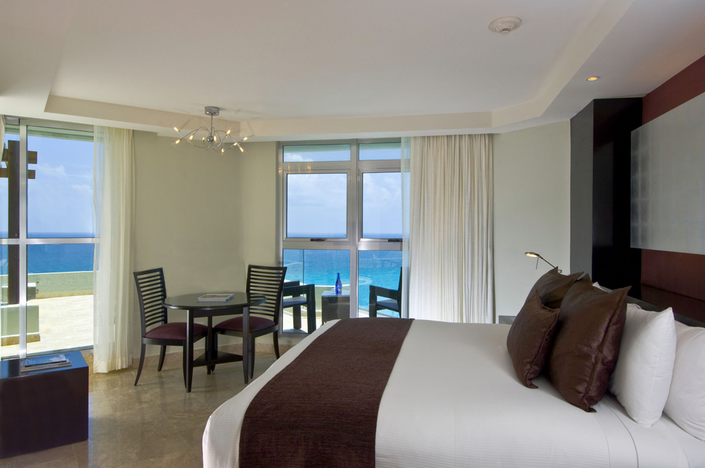 Манящий и вдохновляющий, Me Cancun предлагает роскошные номера с впечатляющими видами, работами и обстановкой знаменитого Юрия Затаряна, незаменимыми предметами роскошы, такими как ливневый душ и экологические косметические принадлежности, и приятными дополнительными аксессуарами в виде усилителя для MP3 плейера и звука Doulby Surround. Благодаря ярким тонам современной мебели и изысканному дизайну все 417 номеров этого комплекса отражают новую концепцию отдыха, помогающую гостям комплекса забыть о повседневной рутине и хлопотах. Все номера с прекрасным видом на море или лагуну, включая 29 Loft Suites, 35 The Level Rooms, 4 Passion Suites и 2 The Level Suites и Suite Me. - Aura Room – 38,5 кв.м, с одной большой кроватью или двумя кроватями. Вид на лагуну. Максимальное размещение 3 человека. - Vibe Ocean View – 38,5 кв.м, с одной большой кроватью или двумя кроватями. Вид на море. Максимальное размещение 3 человека. - Mode Ocean Front room – 38,5 кв.м, с одной большой кроватью или двумя кроватями. Прямой вид на море. Максимальное размещение 3 человека. В номерах есть произведения искусств известного мексиканского скульптора Yuri Zatarain. Me Cancun “The Level” (аналог концепции Royal Service в отелях марки Sol Melia). «The Level» это концепция из 70 первоклассных номеров, включая 35 сьютов с джакузи и эксклюзивный двухуровневый Suite Me. Занимаю полностью два этажа «Только для взрослых», The Level предлагает широкий выбор дополнительных эксклюзивных преимуществ. Сердцем и центром The Level является «The Living Room» приватных двухуровневый зал только для клиентов этой категории. Здесь Вы найдете своего консьержа, так называемого Aura Manager. По вечерам здесь подают изысканные вина, а утром дополнительный завтрак. Aura Manager заботится о том, чтобы бы проживание гостей отеля было комфортным и лишенным каких-либо волнений. Во время пребывания гостей в отеле, менеджер исполняет все их пожелания. В номерах THE LEVEL клиентам предлагаются следующие дополнительные эксклюзивные услуги: - Приватный check-in и check-out и эксклюзивный доступ в The Living Room Lounge– отдельный зал, находящийся на 10 этаже - Услуги консьержа - Сервис Petit Dejeuner – лёгкий завтрак в номере (по предварительному заказу) - Бесплатный доступ в тренажерный зал YHI SPA, сауна, парилка - Бесплатное обслуживание номеров 24 часа - Вечерний чай в The Living Room Lounge, ежедневно - Лёгкие закуски в The Living Room Lounge (07.00 – 23.00) - Дегустация вин и текилы в винотеке - Один романтический ужин на пляже, напротив ресторана Water Grill (максимально 2 человека, при минимальном пребывании в течении 3 ночей, предварительное бронирование) - Доступ в Beach Club, включая вечеринки и специальные мероприятия - Бесплатный доступ в Chill Out Deck - Лежак в индонезийском стиле бесплатно (1 лежак на номер в день, максимум 4 человека) для гостей номеров The Level Passion Suite, The Level Master Suite и Suite Me - Приоритетное бронирование YHI SPA и ресторанов - Возможность мини-сеанса массажа (20 минут) на выбор — массаж ног, рук, головы в YHI SPA (1 сеанс на человека на проживание, при бронировании минимум 3 ночей) - На выбор одно бесплатное занятие из фитнес-программы YHI SPA — йога, пилатес или спиннинг (предварительное бронирование, минимальное пребывание в отеле 3 ночи) - The Level Style Suite просторные номера в светлых тонах, 49 кв.м, с одной большой кроватью. Вид на лагуну. - The Level Style Suite Ocean View просторные номера в светлых тонах, 49 кв.м, с одной большой кроватью. Вид на море. - The Level Lof Suite – площадь 38,4 кв.м + терраса 15 кв.м, с одной большой кроват