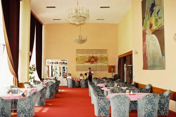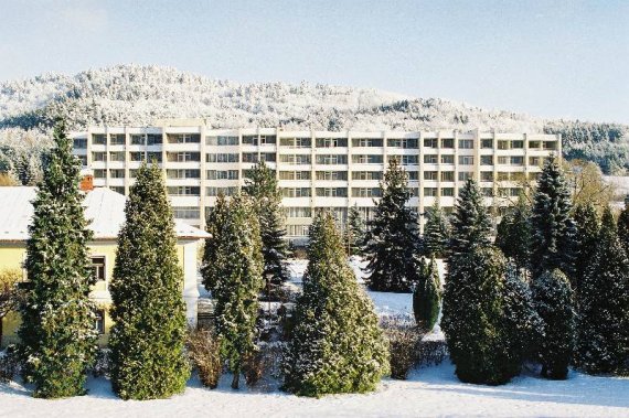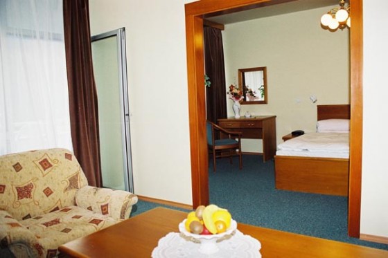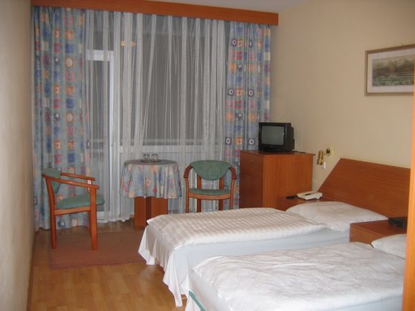 Гостиница была построена в 1976году. Пяти этажное здание в центре курорта, соединен стекляным коридором с Бальнеологическим центром. В отеле: одно- и двухместные номера с допол.спальнмы местом – ракладное кресло. В каждом номере: ванная комната, телефон, телевизор, радио и холодильник. Большинство номеров имеет балкон. Предлагаетсья проживание и в двухкомнатных апартаментах. Питание: завтрак–буфeт, обед и ужин на выбор. Дополнительные услуги: ресторан, бар, фитнесс-центр, сауна, солярий, аптека, парикмахерская, стоянка машин, сейф, обмен валюты, конфереционный зал, постоянная медицинская служба, парикмахерская.