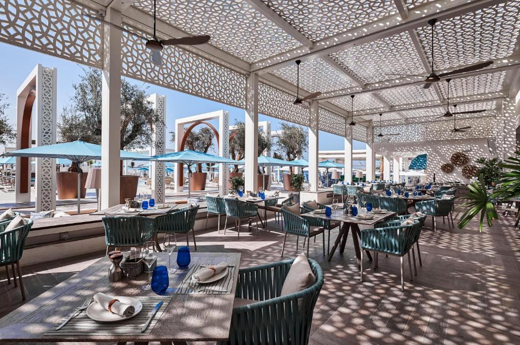 3 ресторани (The Rotisserie – арабська і північноєвропейська кухня, відкритий цілий день; індійський ресторан Nina; виконаний в азіатському стилі Eauzone з басейном і виходом на пляж)
