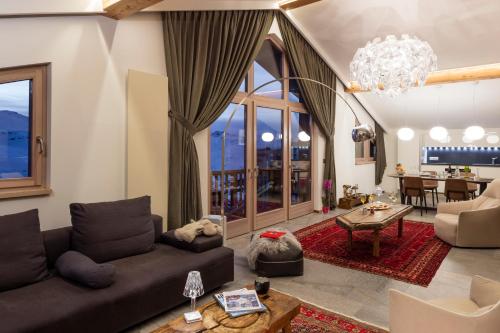 На гостей чекають елегантні та комфортабельні номери з балконами і чудовим видом на гори, просторі апартаменти-шале і навіть справжня колиба- іглу на даху готелю.