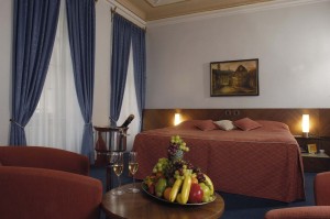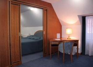 Описание комнат: 2 двухместных номера, 9 апартаментов, обставленных старинной мебелью. Просторные апартаменты и номера оборудованны ванной-люкс, прямым телефоном, спутниковым телевидением, минибаром, сейфом, соединением с интернет.