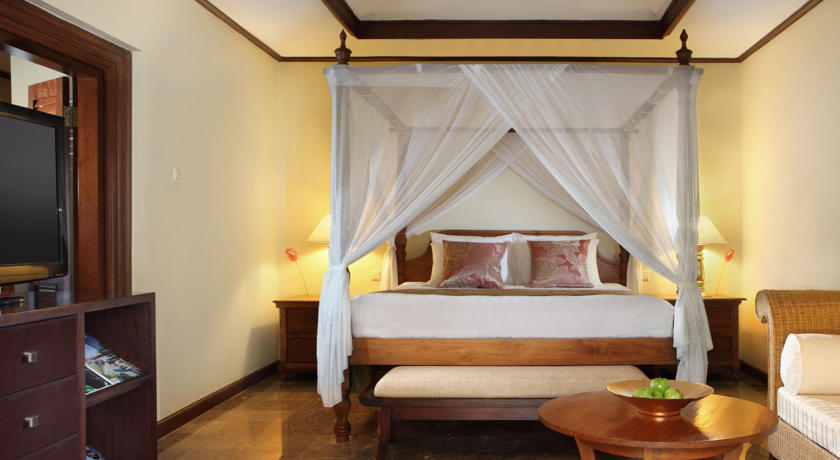 Типи номерів: Garden Wing - 60 номерів з видом на сад, корпус Beach Wing складається з 42 номерів з видом на пляж і басейн, 21 номер типу бунгало з невеликою терасою. 2 номери Junior Suite і 2 Santrian Suite розташовані в окремому корпусі Santrian Block.