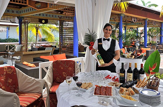 Рестораны: - Ресторан-буфет La Ceiba - Просторный открытый зал с потолком из ценных пород дерева и широкий ассортимент блюд. Полный завтрак с игристым вином и натуральными соками, обед и ужин с оригинальными блюдами, приготовленными на ваших глазах. Кроме того, тематические вечера с представлениями: кубинская, мексканская и «морская» ночь. - Ресторан легкой еды La Laguna-Снек-бар с видом на бассейн и тропические палисадники в обеденные часы предлагает изысканное меню – мясо, приготовленное на гриле, блюда итальянской кухни и дары моря. Для тех, кто желает освежиться предлагаются соки, спиртные и газированные напитки. - Ресторан международной кухни El Bohío - Ресторан, оформленный в колониальном стиле, - прекрасная возможность для романтического ужина. Его меню состоит из целого ряда вкусно приготовленных и красиво оформленных блюд международной кухни. В ресторане «Эль Патио» вы получите полное удовольствие от ужина после дня, проведенного на лоне пышной девственной природы. - Ресторан легкой еды Санта-Мария - Прямо на природе, в гриль-ресторане «Санта-Мария» вы можете отведать разнообразные блюда – приготовленные на углях, свежеприготовленные салаты, мясо и дары моря – при этом вам не придется покидать великолепного пляжа «Эсмеральда». Спастись от тропической жары вам помогут разнообразные освежающие напитки, которые предлагает бар нашего ранчо-ресторана. - Ресторан средиземноморской кухни Mediterráneo - Открытие нового ресторана после того, как отель стал действовать под брендом Paradisus. Ресторан-гурмэ с блюдами высокой средиземноморской кухни и картой разнообразных отборных вин. Прекрасный декор в колониальном стиле, атмосфера, сочетающая элегантность и романтику, позволяют считать этот ресторан жемчужиной отеля. Дополняющей деталью ужина – до или после него – является «Салон Абана» с лучшими эксклюзивными кубинскими сигарами и картой отборных вин и напитков класса «Премиум» для клиентов с изысканным вкусом. - Ресторан восточной кухни Tsuru - В уютном японском ресторане вам предложат не только лучшие традиционные блюда этой страны, но разнообразные вина высшего качества. Приятная обстановка этого ресторана придется по вкусу любителям японской кухни. - Ресторан международной кухни Los Helechos - Эксклюзивно для клиентов Роял Сервиса. Это ресторан «а-ля-карт», предлагающий изысканные блюда международной кухни. Помещение с кондиционированным воздухом, со столиками на наружной террасе, где можно насладиться морским воздухом и полюбоваться окружающей природой. Отсюда открываются прекрасные виды на бассейн Роял сервис и море. Ужин под аккомпанемент фортепианной музыки. Бары: - Лобби-бар "Palma Real" с живописным панно с изображением национального дерева Кубы – место, где можно отдохнуть от дневных развлечений и попробовать разнообразные местные и импортные напитки. - В аква-баре "El Salton" можно почувствовать себя, как на берегу моря в окружении кокосовых пальм. Это просторный бар, где можно расслабиться или провести время за беседой с друзьями. Предлагаются разнообразные коктейли с тропическими напитками. - Кубинский бар "El Patio de los Naranjos" под открытым небом, расположенный на территории, примыкаюшей к холлу отеля. Обстановка бара воспроизводит различные достопримечательные места города Ольгин, такие как бывший дом консистории, «знаковый» бар «Гуая