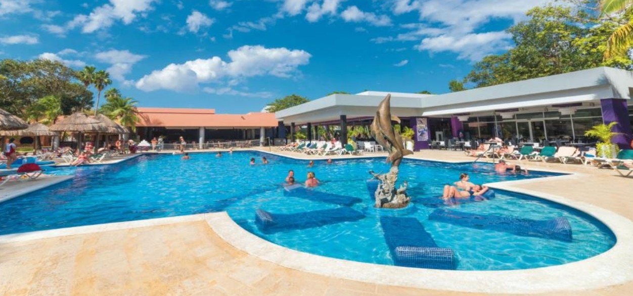 2 басейни відкритих, терасадля засмаги, тренажерний зал (з 18 років), конференц-зал - $, бізнес-центр - $, салон краси - $, SPA-центр (різні процедури для обличчя та тіла, масаж) - $, тенісний корт безкоштовно (твердий майданчик з прожекторами), гольф (2,5 км від готелю) - $, баскетбольна площадка, спортивний майданчик, магазин сувенірів, автостоянка,сейф - $, пральня/ хімчистка - $, трансфер від/ до аеропорту - $ Для дітей: дитячий басейн, дитячий майданчик, дитячий клуб RiuLand (4-7 та 8-12 років), анімація, няня - $ Пляж: 3,5 км до пляжу (надається безкоштовний трансфер з 07:30 до 18:30, кожні 30 хвилин, перерва на обід з 13:00 до 14:00). Невеликий басейн для гостей готелю на пляжі, поряд з пляжним рестораном/баром Cozumel Пляж власний, парасольки, шезлонги, рушники (безкоштовно)
