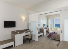 Family Room Sea View 28 кв.м (макс. 3+1): спальня з двоспальним ліжком або 2 окремими ліжками, 2 односпальними ліжками в зоні вітальні, розділеною оптичною перегородкою