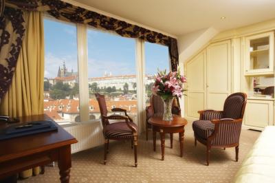 Сказочно роскошные номера с изысканной мебелью и потрясающей атмосферой созданы специально для отдыха и комфорта гостей. Из номеров отеля открывается сказочный вид на Пражский Град или Влтаву. Все номера оснащены ванной комнатой и туалетом. Есть номера для некурящих и алергиков.