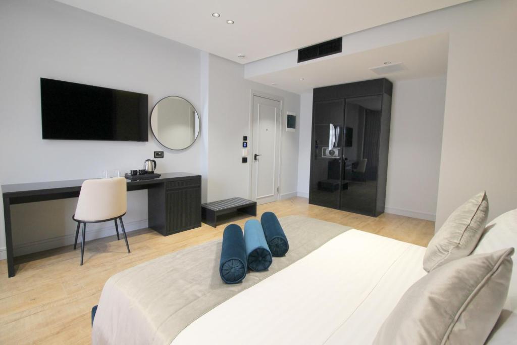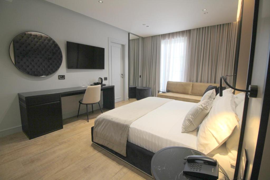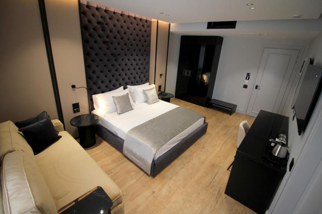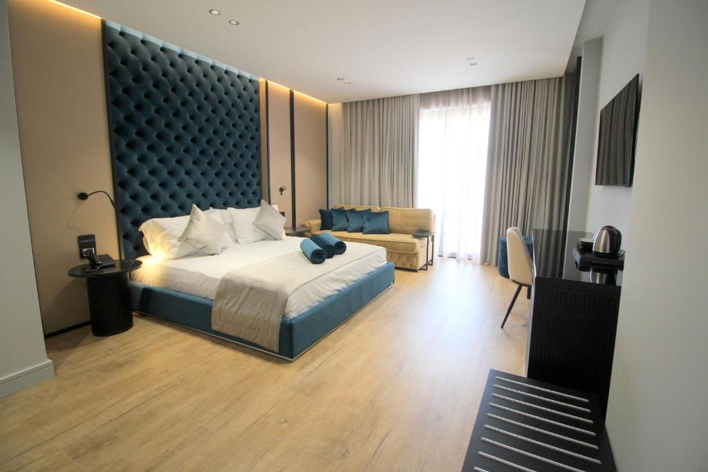 DELUXE TRPL ROOM with SV - номер з балконом (вид на море), одним двоспальним ліжком і диваном, на якому може розміститися одна людина. Усього 4 кімнати даної категорії.