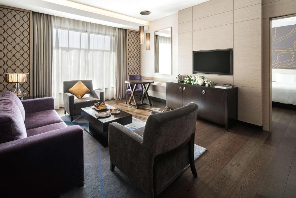 Завдяки сучасним зручностям, вишуканому комфорту та винятковим штрихам, номери дозволять вам повністю зануритися в особливий спокій. Всі номери оснащені швидким безкоштовним Wi-Fi, мають стриманий декор та стильні ванні кімнати. Унікальне вираження сучасного Маскату, дизайн відображає дивовижність і культуру Оману. Номери доповнені найкращими технологіями та розкішними зручностями: Міні-бар або холодильник Професійний фен Халат і капці Тропічний душ Телевізор з плоским екраном Праска та прасувальна дошка Сейф Кавоварка Nespresso Все необхідне для приготування кави та чаю меню подушок Collection Room (40 м²) - 2 односпальні ліжка або 1 ліжко розміру "king-size". Collection Superior Room (44 м²) - додатковий простір, 1 ліжко "king size". Також є номери з видом на басейн. Collection Executive Room with Lounge Access (40 м²) - 2 односпальні ліжка або 1 ліжко розміру «king-size». Номери, мають додаткові переваги: безкоштовний сніданок та доступ до представницького лаунжу. У вартість проживання також входить вибір алкогольних та безалкогольних напої. Junior Suite with Lounge Access and Terrace (65 м²) - 1 двоспальне ліжко розміру «king-size». Покращіть свій відпочинок такими перевагами, як окрема зона відпочинку/вітальні, де можна повністю розслабитися, а також відкрита тераса з мальовничим видом на гори. У вартість проживання також входить вибір алкогольних та безалкогольних напої. Suite with Lounge Access (80 м²) - 1 двоспальне ліжко розміру «king-size». Насолоджуйтеся додатковим простором окремої вітальні в цьому люксі. У вартість проживання також входить вибір алкогольних та безалкогольних напої. Presidential Suite with Lounge Access (120 м²) - 1 двоспальне ліжко розміру «king-size». Люкси мають окрему вітальню для додаткового простору, сучасні телевізори та міні-кухню, що робить ваше перебування у них справді унікальним. У вартість проживання також входить вибір алкогольних та безалкогольних напої.
