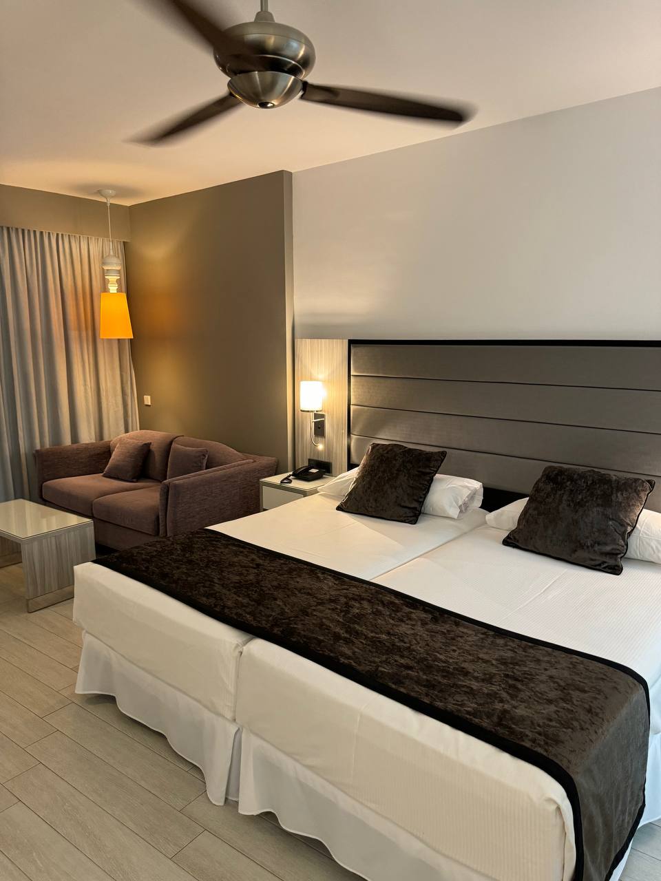 Понад 300 номерів готелю Riu Palace Tenerife повністю обладнані для забезпечення максимального комфорту під час перебування. Ви матимете супутникове телебачення, кондиціонер, зручності та балкон або терасу, щоб насолоджуватися мальовничим оточенням готелю. У готелі Riu Palace Tenerife є 2 відкриті басейни, пейзажний басейн з балійськими ліжками, дитячий басейн і критий басейн з підігрівом, щоб ви могли насолоджуватися відпочинком на Тенеріфе. Large Double Room Стандартні двомісні номери в готелі Riu Palace Tenerife ідеально обладнані найкращими зручностями, щоб ви могли насолоджуватися своїм перебуванням із максимальним комфортом. У цих номерах площею 33 м2 є два односпальні ліжка (110х200 см) або одне двоспальне ліжко (180х200 см), диван у лаунж-зоні, Wi-Fi, супутникове телебачення, балкон або тераса. Large Double Room with sea view Ці номери площею 33 м2 спеціально розроблені, щоб запропонувати все необхідне для незабутнього відпочинку. Великі двомісні номери з видом на море або сад готелю Riu Palace Tenerife мають два односпальні ліжка (110x200 см) або одне двоспальне ліжко (180x200 см), диван у зоні відпочинку, Wi-Fi, супутникове телебачення, балкон або терасу. з неймовірним видом на море або сади готелю. Jr. Suite with sea view Напівлюкси з видом на море в готелі Riu Palace Tenerife є ідеальним місцем для тих, хто хоче насолодитися перебуванням на Тенеріфе з найкращим видом на Атлантичний океан. У цих номерах площею 38 м2 ви знайдете два односпальні ліжка (110х200 см) або одне двоспальне ліжко (180х200 см), диван у лаунж зоні, гідромасажну ванну, Wi-Fi, супутникове телебачення, балкон або терасу. з видом на море. Крім того, якщо ви зупинитесь у цих номерах, у вас буде балійське ліжко біля пейзажного басейну, зони лише для дорослих. Large Double Room with partial sea view Готель Riu Palace Tenerife пропонує вам великі двомісні номери площею 33 м2 з боковим видом на море з найкращими послугами та зручностями. У цих номерах ви знайдете два односпальні ліжка (110х200 см) або одне ліжко queen-size (180х200 см), диван у лаунж-зоні, Wi-Fi, супутникове ТБ, а також балкон або терасу з боковим видом на море. Family Room Сімейні номери в готелі Riu Palace Tenerife є ідеальним місцем для людей, які вирішили подорожувати всією сім'єю. Ці номери площею 57 м2 мають два односпальні ліжка (110x200 см) або одне двоспальне ліжко (180x200 см), плюс ще одне односпальне ліжко (110x200 см), диван у лаунж-зоні, Wi-Fi, супутникове телебачення, балкон або терасу. Family Room 2 Bedrooms with Sea View Якщо ви хочете насолодитися незабутньою сімейною втечею, ці номери площею 59 м2 стануть ідеальним варіантом. У сімейних номерах готелю Riu Palace Tenerife ви матимете дві спальні, одну з двома односпальними ліжками (110x200 см), а в іншій — двоспальне ліжко (180x200 см), диван у вітальні, Wi-Fi, супутникове телебачення. Телевізор, а також балкон або тераса з неймовірним видом на море. Individual Room Одномісні номери готелю Riu Palace Tenerife мають усе необхідне, щоб насолодитися унікальною втечею на Тенеріфе. У цих номерах площею 24 м2 ви знайдете одне ліжко (110х200 см), Wi-Fi, супутникове телебачення та балкон.