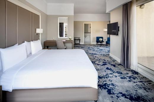 Premium Room (45m²)- просторі, світлі та повітряні номери преміум-класу створені для того, щоб ви відчували себе як удома далеко від дому. Насолоджуйтесь захоплюючим видом на зелень, що оточує курорт, або на басейн чи море. Безкоштовний WIFI, сейф, усе необхідне для приготування кави та чаю, диван та ванна кімната з душем.