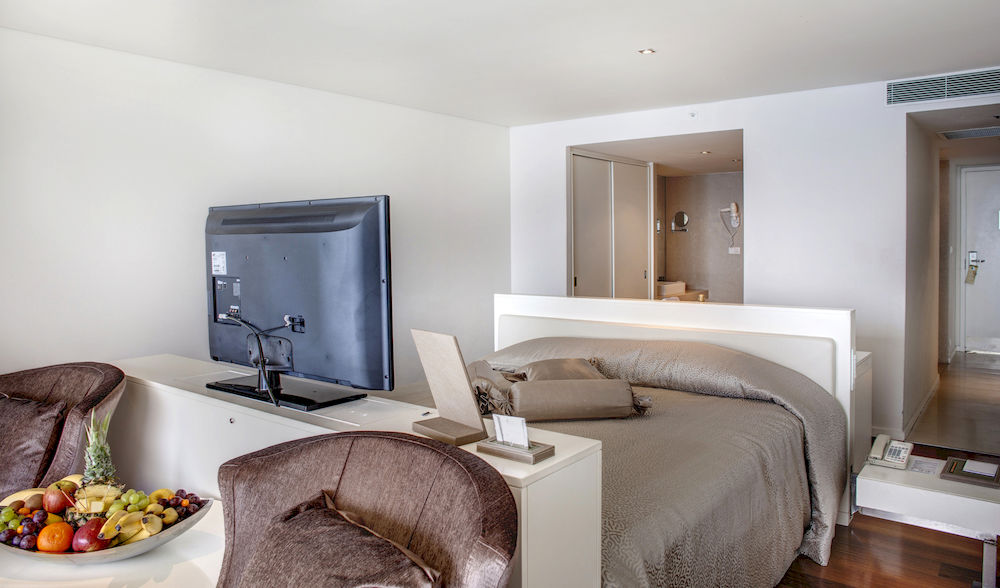 Executive Suite Просторный номер со стильным дизайном интерьера, кожаной мебелью, джакузи и великолепным видом на море. Номер расположен на последнем этаже отеля.